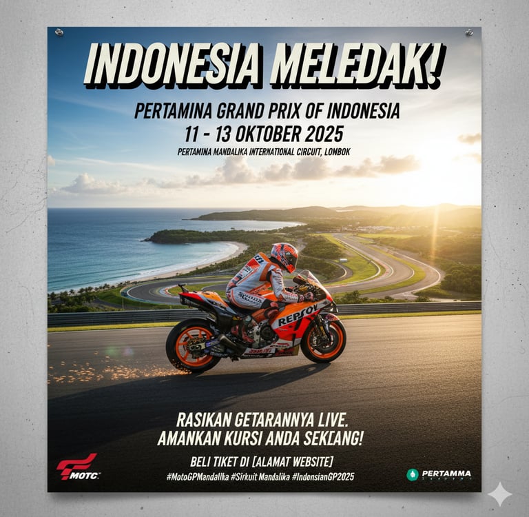 Indonesia kembali menjadi tuan rumah ajang balap motor paling bergengsi di dunia! Setelah sukses besar dalam penyelenggaraan sebelumnya, Pertamina Mandalika International Circuit siap menyambut para penggemar balap untuk seri Grand Prix Indonesia.